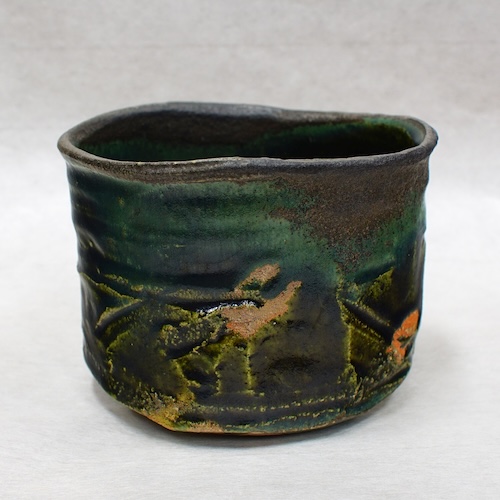 美濃焼を代表する陶芸家「加藤亮太郎氏」は、美濃桃山陶の伝統に正面から立ち向かい、自ら窯を築き、穴窯焼成の志野、引出黒、織部、黄瀬戸など、特に茶碗の制作に力を入れる。また書と陶が融合した作品や、異素材とのコラボレーションも積極的に手掛けています。