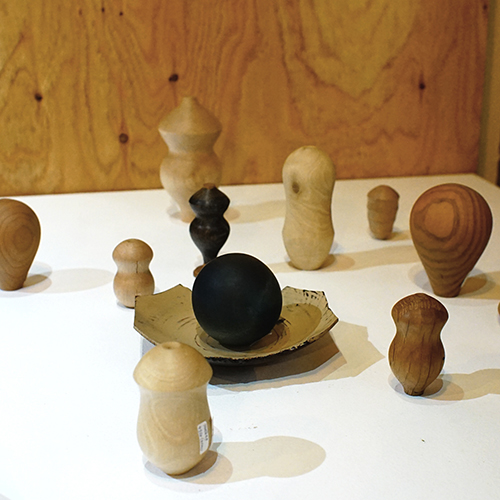 木と会話をしながら、木から受け取った形に向かって感覚で削り出す職人です。化学合成のものは使わず、身近にある素材から着彩、仕上げまでを施していきます。